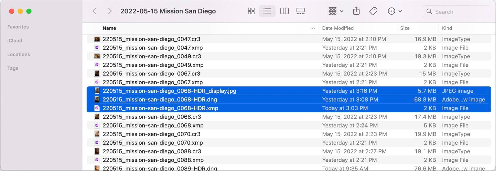 Edit your photos as desired. For this series I photographed several brackets for HDR. I used Lightroom’s HDR merge which created DNG files. These DNGs were automatically added to Mylio Photos because the images in my Lightroom Catalog are in a folder that is also being watched by Mylio Photos.