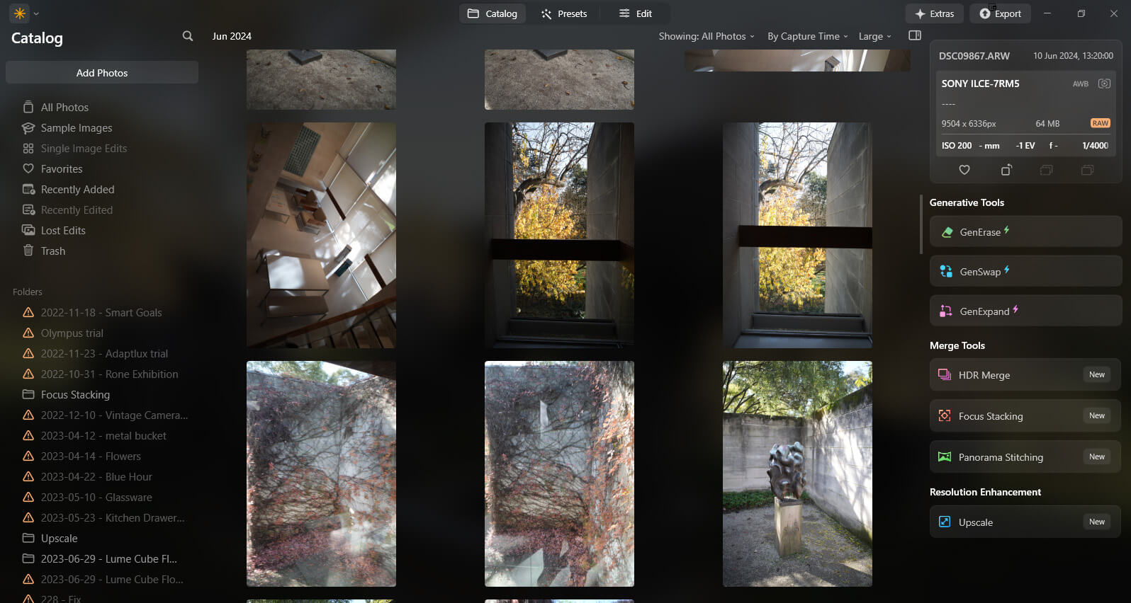 In the Luminar Neo update 1.20.0, you’ll see the tools for merging photos and enhancing resolution: HDR Merge, Panorama Stitching, Focus Stacking, and UpscaleAI.