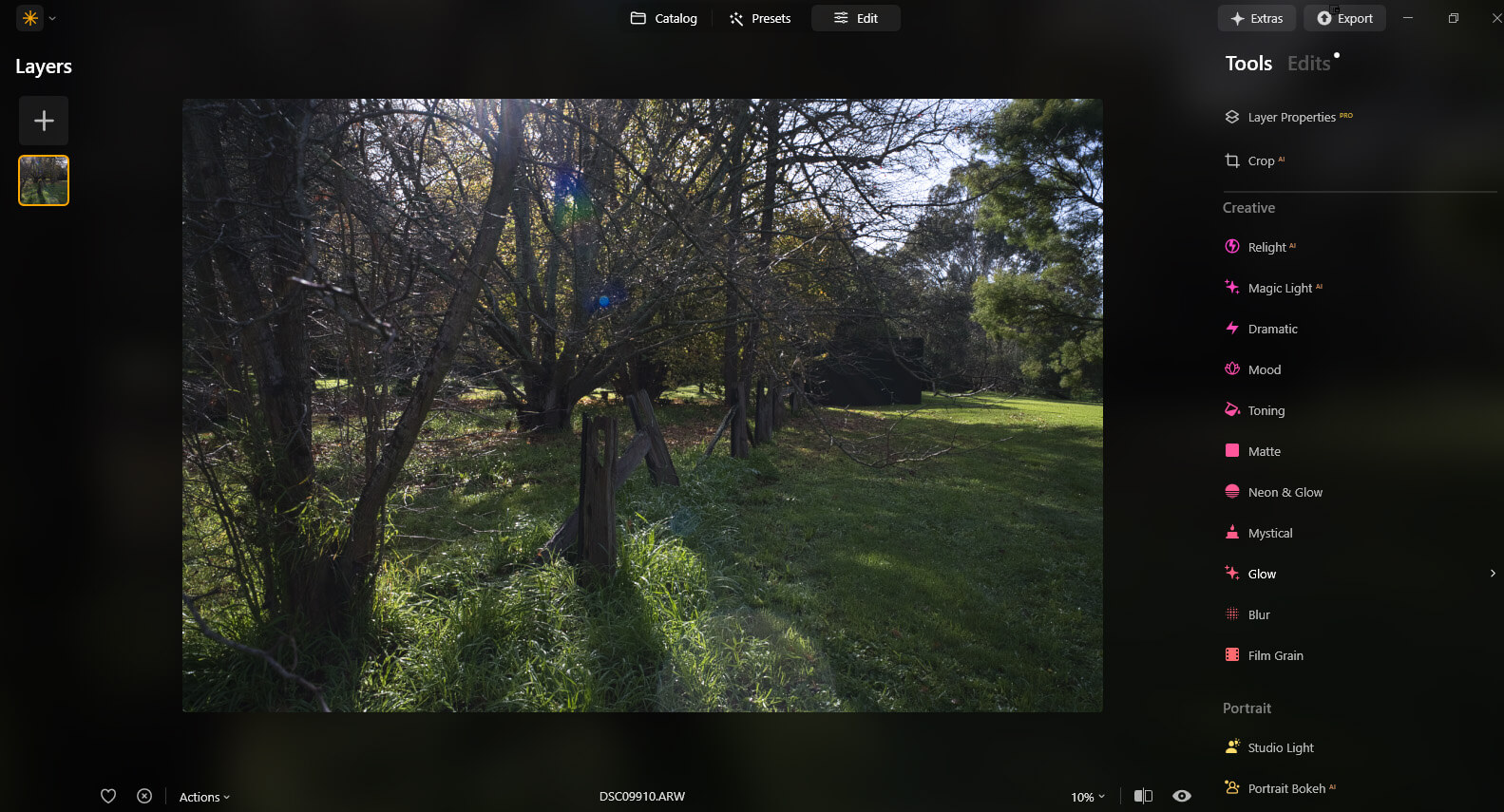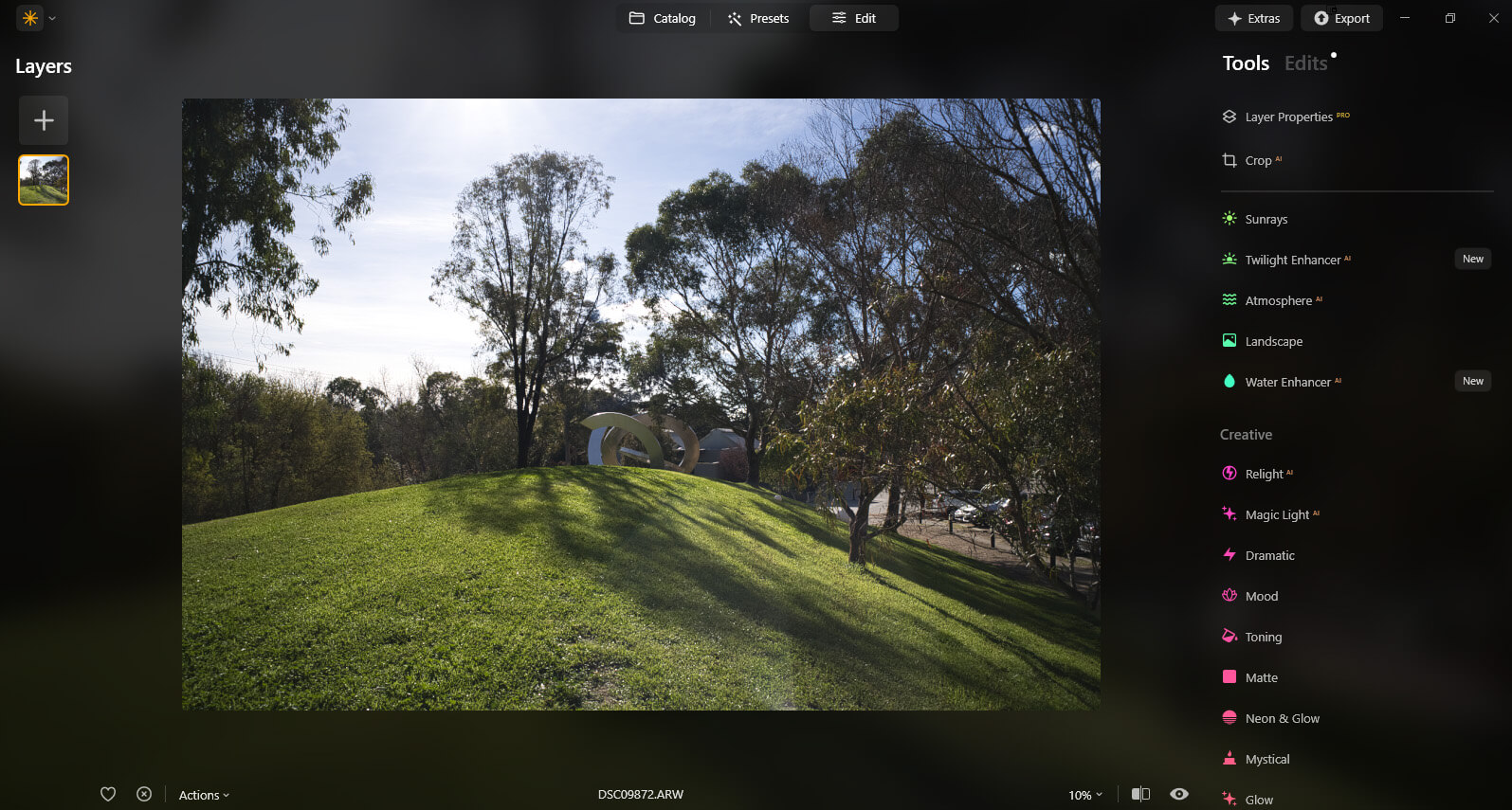 Magic LightAI will appear in the Creative section, and Background RemovalAI in Layers. Extensions will now move from the Extras tab into new locations among other features.