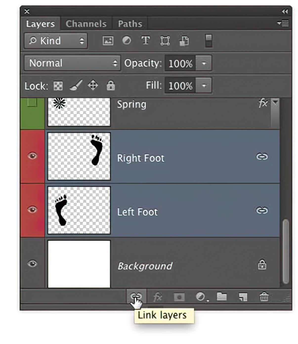 Select your layers using the Command-click (Ctrl-click) technique. Then, press Command+G (Ctrl+G) or choose Layer > Group to place these layers into a new group (which looks like a folder). If you’d like to name the group, double-click the folder’s name in the Layers panel. You can now move these elements together.