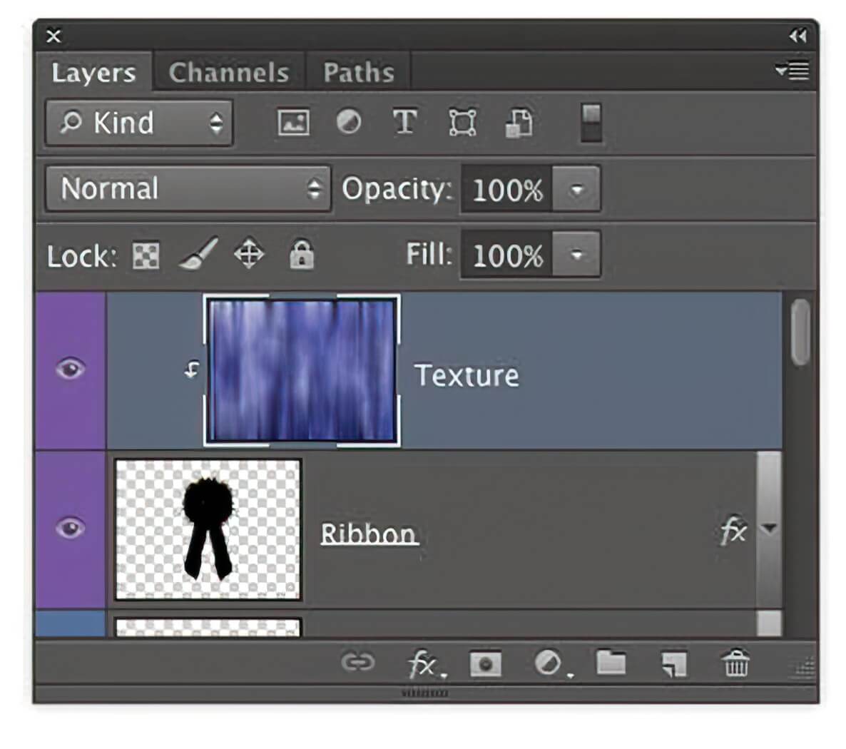 Sometimes you’ll want to place the contents of one layer inside those of another. Designers often use this technique to fill text with a pattern or to constrain a photo to fit inside a shape. The concept is called a Clipping Mask (earlier versions of Photoshop called it Group with Previous), and it’s fairly easy and flexible.