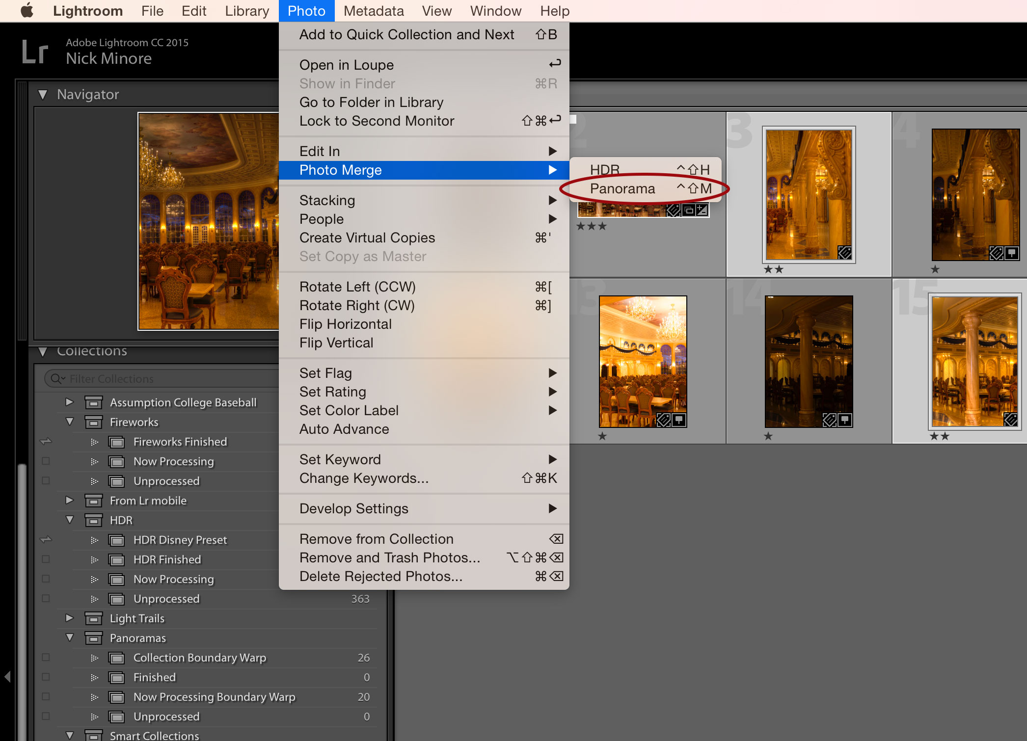 Next, choose the Photo menu, then click Photo Merge > Panorama.