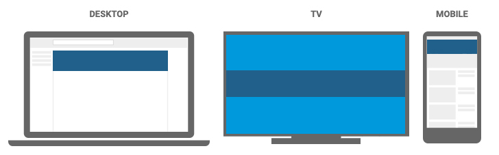 Your channel art (header image) can be changed by clicking the image icon in the upper right on your channel page header area. You’ll need a 2560×1440 pixel image at 72 dpi that is under 6MB file size. This will fill a TV display, but will be cropped for desktop and mobile displays. As you see in the image below, the dark blue area that I’ve highlighted in the TV image is what displays on desktop or mobile. Unlike the account icon, there is more room here for text/taglines and appealing imagery.